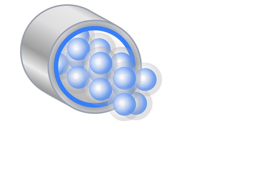 The JETEX cannon (1) generates a unique two‑phase jet: a fast‑moving stream (4) transports micro‑sized water droplets (2). As shown in the cutaway diagram, the droplets form a tight, spherical arrangement (touching at six points) inside an air sheath (3), maximizing fire‑suppression performance.